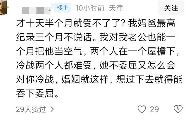 一男子发视频吐槽,和妻子结婚13年以来,每次吵架后,妻子都是十天半个月不理人。