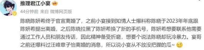 根据他的描述,陈晓早在2023年年底就提出了离婚意向,并采取了一系列行动来切断与陈妍希的直接联系,包括拉黑对方微信、更换手机号码等。