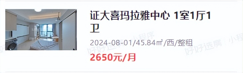 比如位于南站的证大喜玛拉雅中心公寓,45㎡户型去年8月能租到2650元/月,如今月租金下行至2000元左右。
