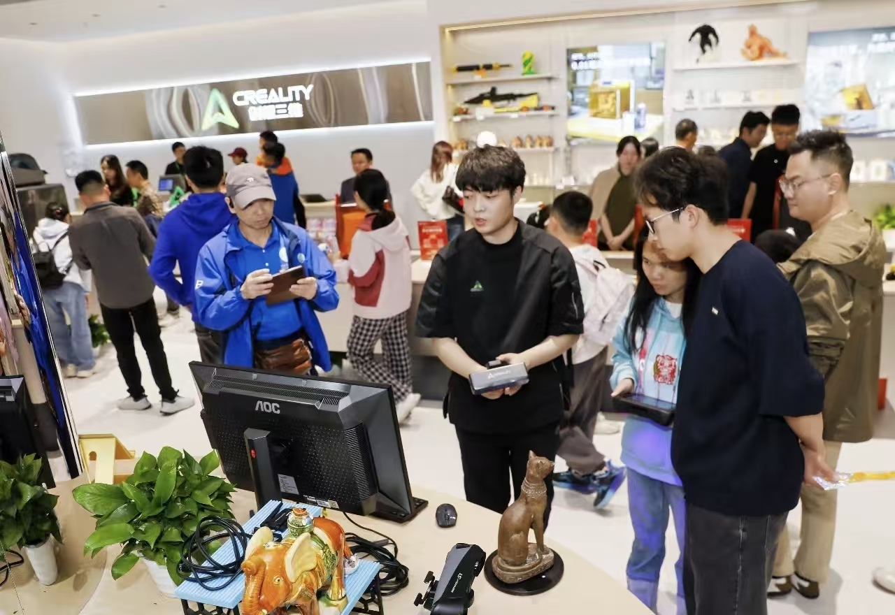 ▲许多用户在创想三维旗舰店内体验和观摩3D打印。