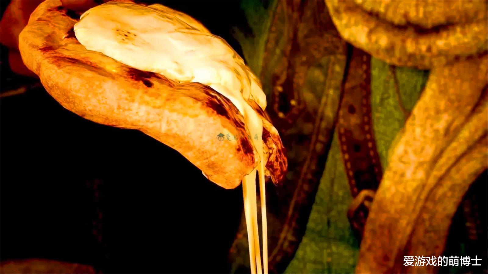 体验过《怪物猎人:荒野》的玩家都知道:当我们探索风音之村库纳法的时候,村民会热情招待,端上来的就是类似芝士烤饼的特色美食。游戏中,这道料理表现得极为诱人,刚出炉的面饼微微焦黄,切开后融化的芝士缓缓流出,再加上NPC们享用时的那满足表情的声音,让每一位熬夜打游戏的玩家都食指大动,有条件的自然要马上点个外卖啦。