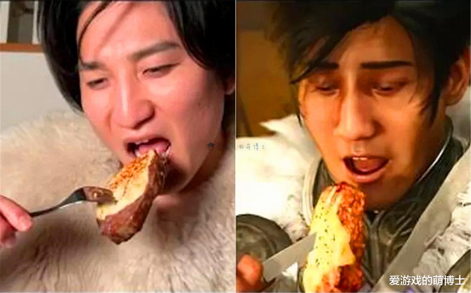 我们看到:哥们拍摄影片时的运镜、服装、食材的选择到烹饪的细节,都力求完美还原游戏。他不仅重现了料理的制作过程,还加入了许多创意巧思,让观众们身临其境,比如:游戏里玩家身旁的艾露猫在现实里用用自家的汪星人来代替。最后完成料理时,那享受的神情与待机的构图,都与游戏里一模一样。值得一提的是:哥们在游戏里的角色就是按照自己的样子捏的,对比之下,确实是一个模子刻出来的!