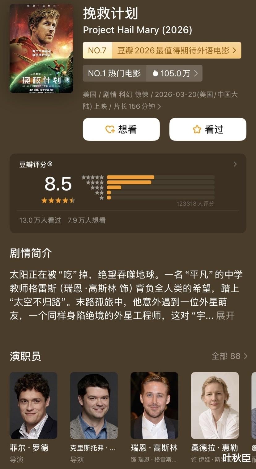 专门选择IMAX厅,买票去看了《挽救计划》。
