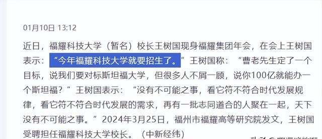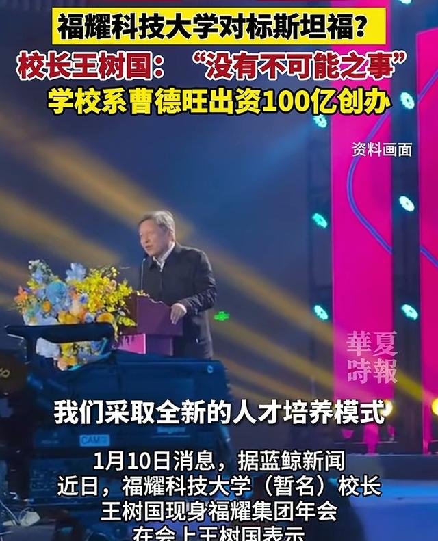 福耀科技大学的故事起点不低。创办人曹德旺,素有“玻璃大王”之称,堪称中国制造业的代表人物,从企业到慈善,他的名字总与“大手笔”挂钩。这次,他联合前西安交大校长王树国,放话要用100亿建一所“中国版斯坦福”。听起来,这确实是一个让人热血沸腾的目标。但也难怪网友们纷纷吐槽:“100亿还想建斯坦福?连‘清北’都不敢这么吹。”不过,这句挑衅式的质疑,显然并没有让王树国退缩。相反,他在年会上坚定地回应:“没有不可能之事!”这番话一出,支持者欢呼,反对者摇头,不少家长甚至感叹:“这学校还没开学,校长倒是先‘飘’了。”