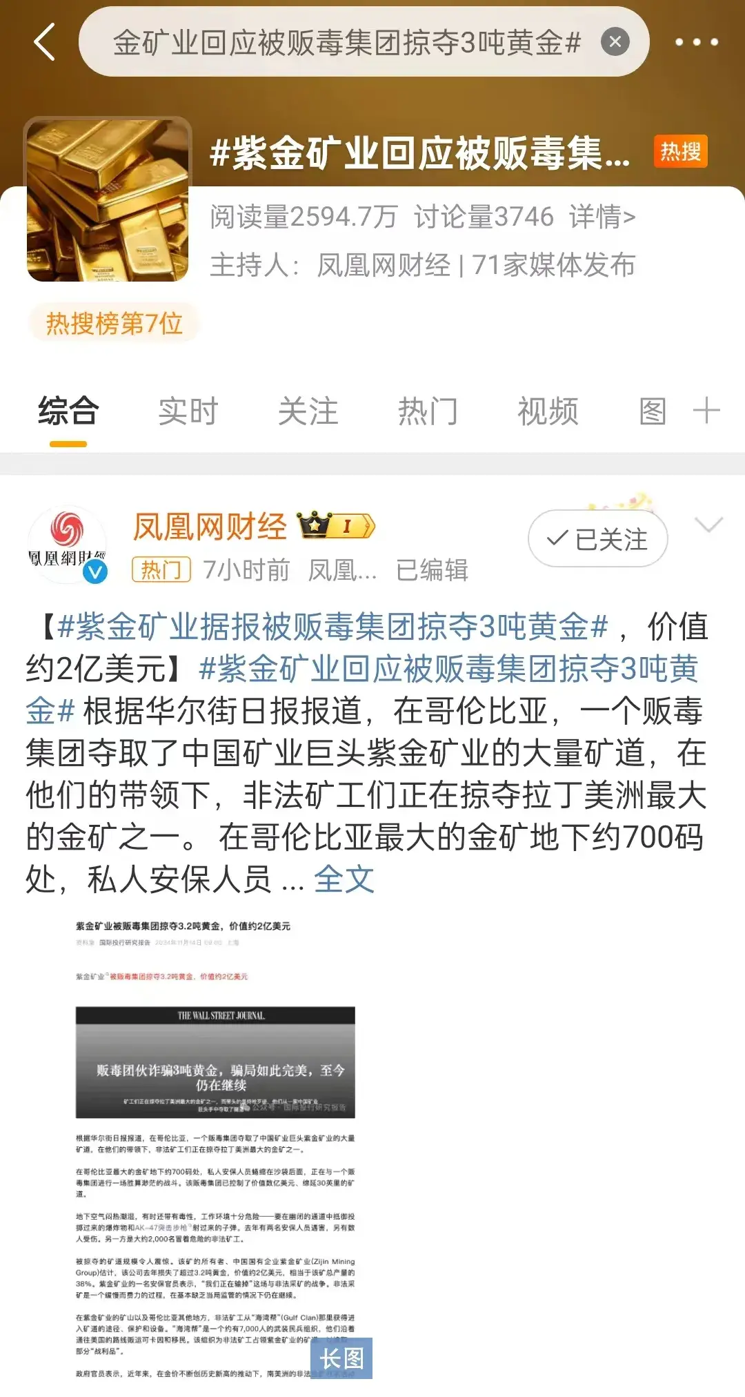 与此同时,紫金矿业黄金被毒贩掠夺的消息,已经迅速冲上微博热搜,并引发大量媒体关注和报道。