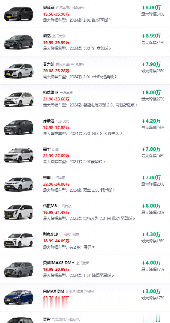 虽然MPV并不像轿车以及SUV那样,有着众多的广泛的消费群体,但是它也有它独特的亮点,对于大家庭人口而言,MPV的实用性可能会更强。今天来看这么10款MPV,如今性价比大增优惠力度加大,主要原因还是市场竞争压力加大。许多国产自主品牌的新能源车型,对他们造成的市场压迫力太强。