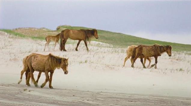 岛上的野马起初是被投放而来的,并不是岛上原有的生物种群。为了搞明白这些野马到底是如何在这种恶劣的环境中繁衍下来的,卢卡斯每天都观察它们,她甚至能认出岛上的每一匹马。