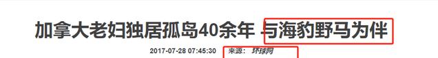 环球网:加拿大老妇独居孤岛40余年 与海豹野马为伴 2017-07-28