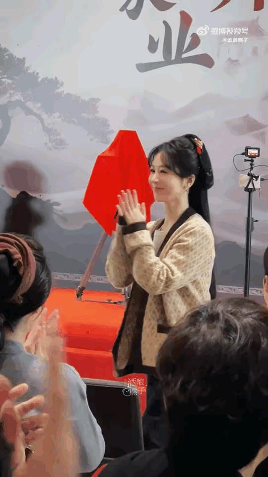 杨紫新剧开机,笑得一脸阳光,还是那么随和,一点大明星的架子也没有,两个手摇的都模糊了。杨紫这次的造型还是很亮眼的,端庄大气,即使没有滤镜也能看到杨紫的温婉秀丽,真的成大姑娘了。