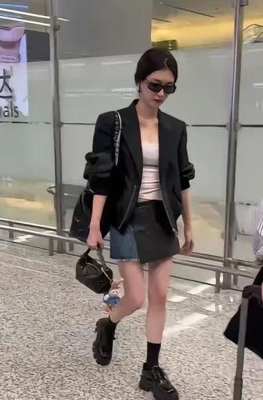 路人镜头下的江疏影,不仅被拍成了头大身子小,更被拍成了一米五的身高,大长腿变成了小短腿,不过腿是真的细。