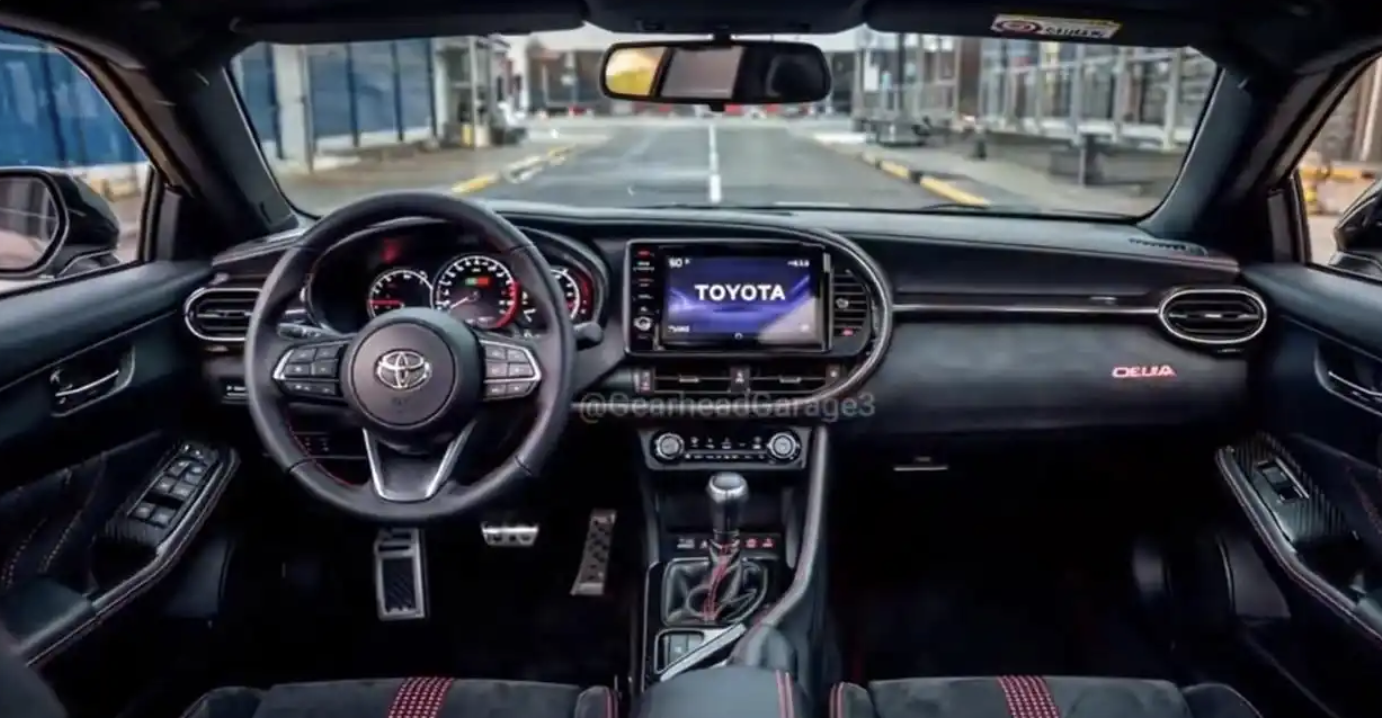 先来回味一下,丰田 MR2的车头造型十分低趴,还加入了那个时代最经典的翻灯设计,和加入了横置式的前大灯,这套设计即便是放到现在也不会过时。全新的丰田中置跑车不知道会不会保留这些经典的设计,封闭式的格栅搭配着丰田银质车标,两侧将会配备不规则多边形前大灯,还加入了黑色的大灯边框,内部融入了北斗七星样式的LED日行灯和双透镜的LED远近光光源,科技感十足。车尾预计也将会配备了固定式碳纤维大尾翼设计,两侧造型复古的大灯加入了熏黑的灯罩,内部融入了极具辨识度的四个圆形大灯和矩形的黄色大灯,十分复古、迷人。丰田也将提供GR运动前后包围设计,三段式的前保险杠由两侧大尺寸导流槽和中间大嘴式格栅组成,黑色蜂窝镂空式中网,黑色的底部扩散器和双边四出的金属炮筒排气,极具运动气息。