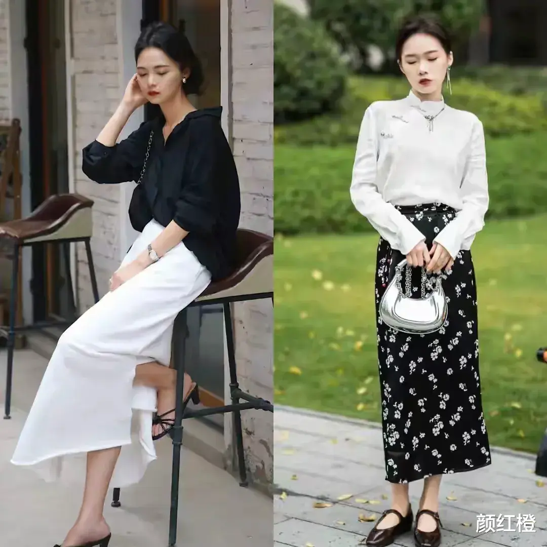 其实有的时候我们在穿衣打扮上真的不用选择过于花哨的衣服款式来搭配,例如下面这位博主用黑色衬衫搭配上白色半身裙就简简单单,两个颜色组合搭配就显得很高级。