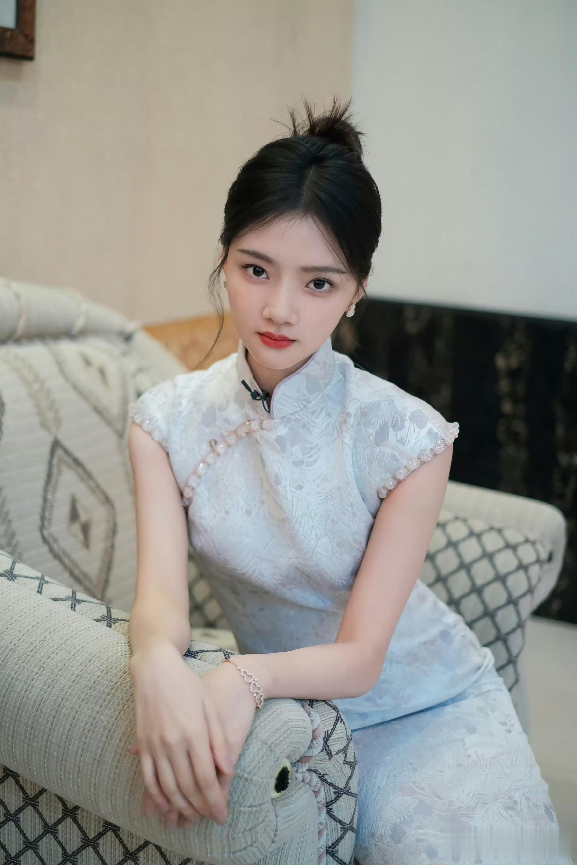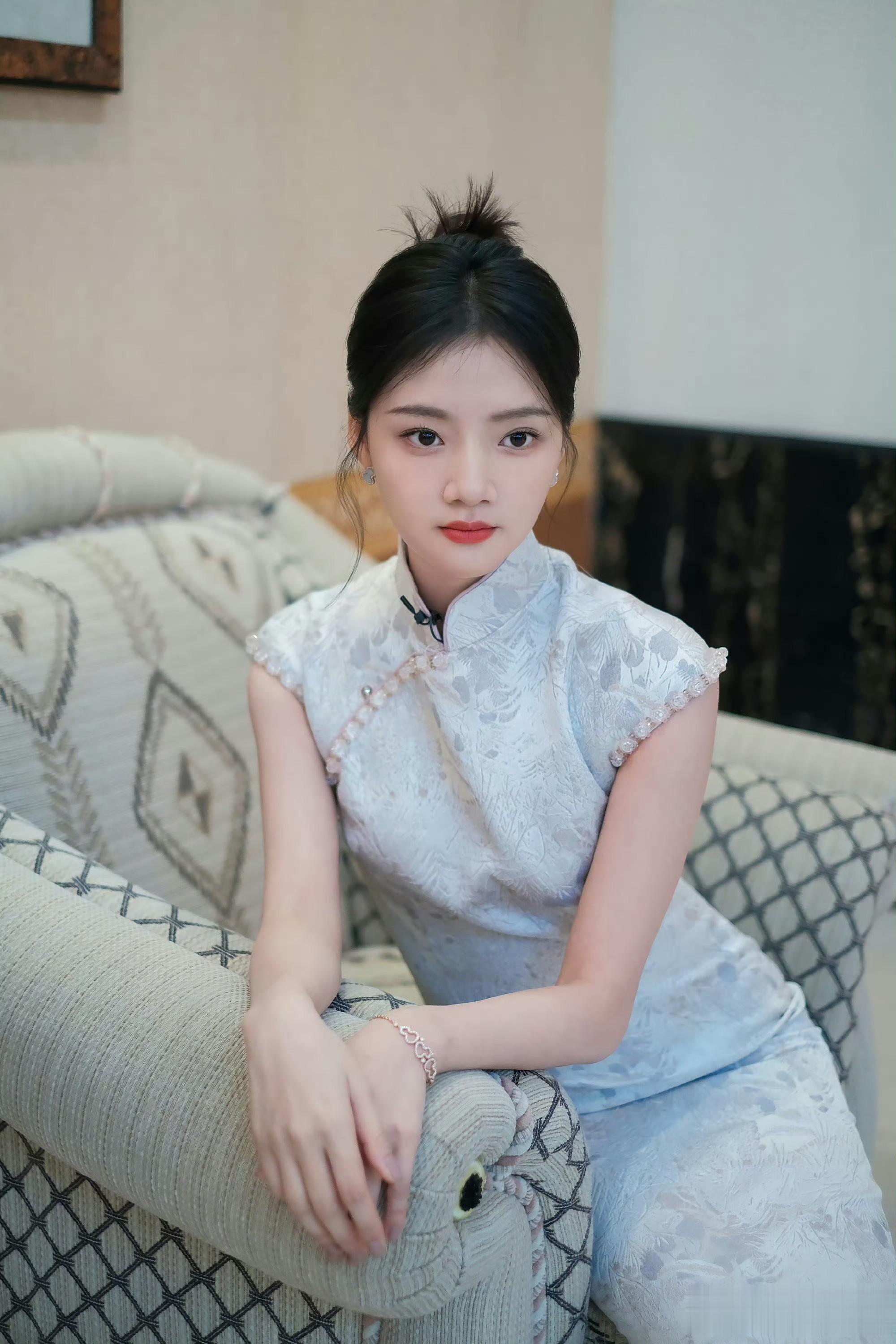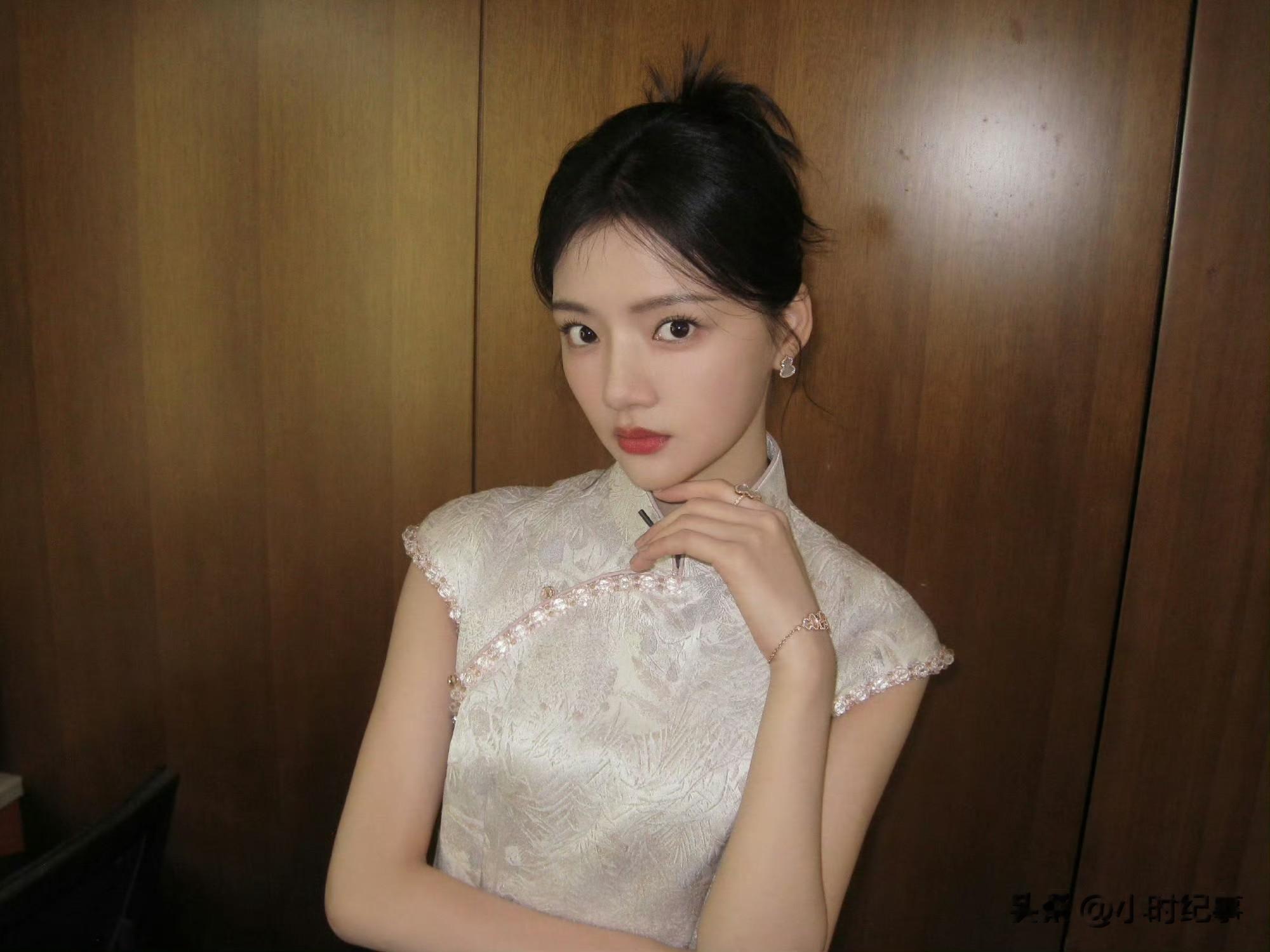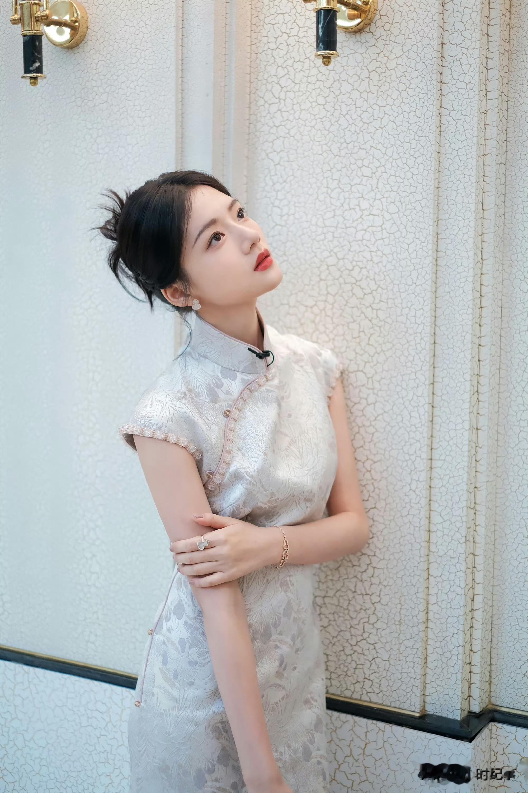 任敏|蕾丝刺绣旗袍穿搭,婀娜甜美的模样