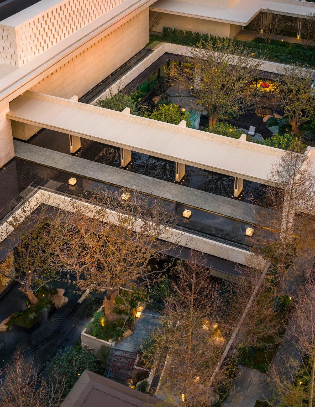 纵观绿城庐系作品,“立体山水庭院”已成其独特标签。通过一系列东方造园巧思,在城市中重构“虽由人作,宛自天开”的山水意境。