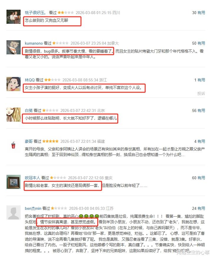 ▶总结:这部剧无疑是近期年代剧中观感较差的一部了!剧情太过狗血,情节脱离现实,女主人设拉胯,看来明星转型之作真的得认真挑选!
