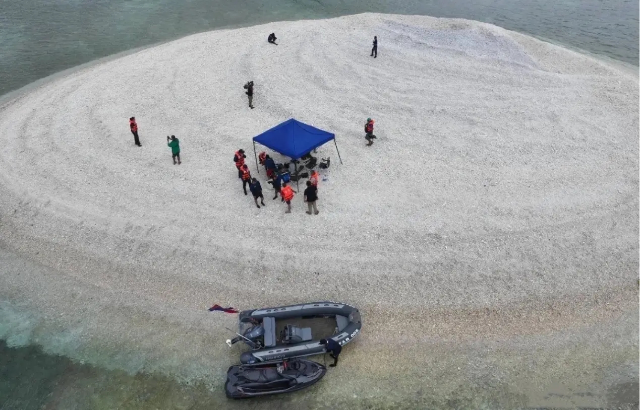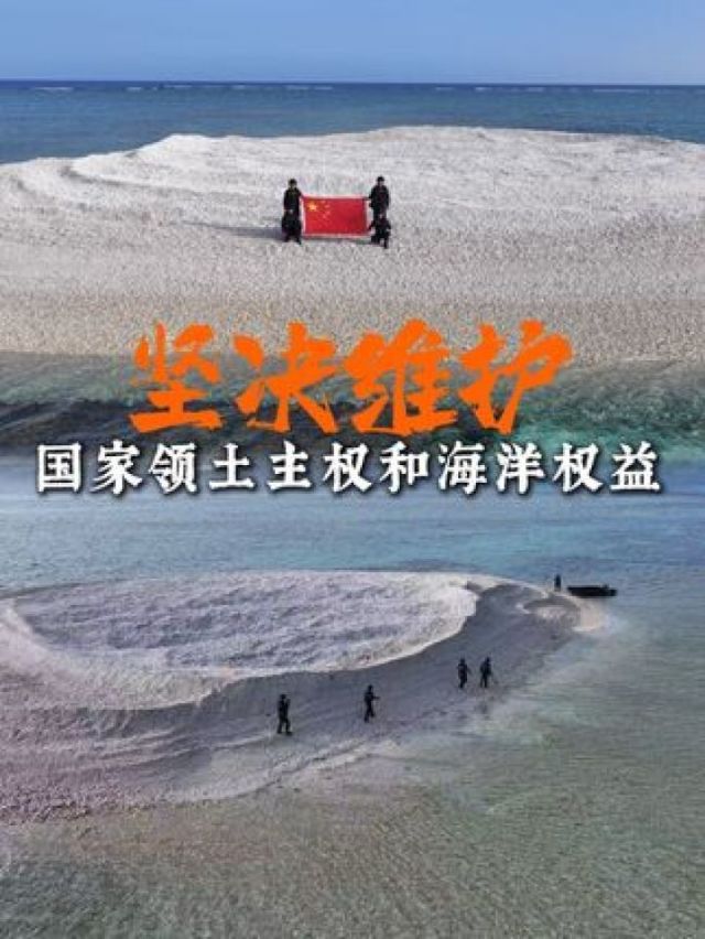 独家图像!中国海警登铁线礁展开五星红旗 宣示主权