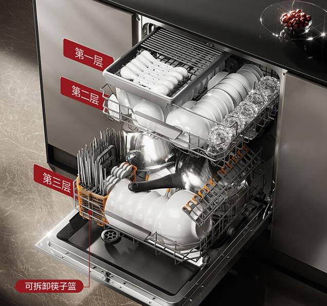 方太02-VP10洗碗机为17套三层碗篮的大容量,清洁指数1.3,干燥指数1.33,基本是行业的天花板。