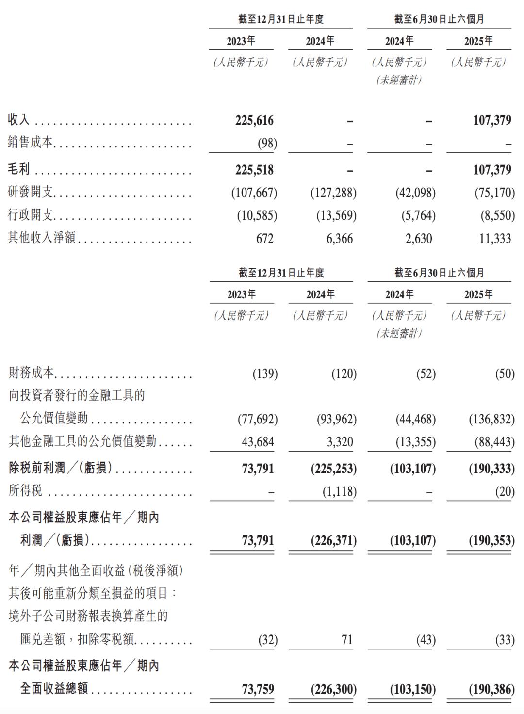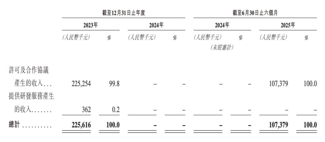 这一合作成为公司收入的唯一支柱:2023年确认相关收入2.26亿元,其中来自Biohaven的收入达2.23亿元,占比99%;2024年因未达成新的里程碑,收入直接降至0元;2025年上半年因确认开发里程碑收入1.07亿元。