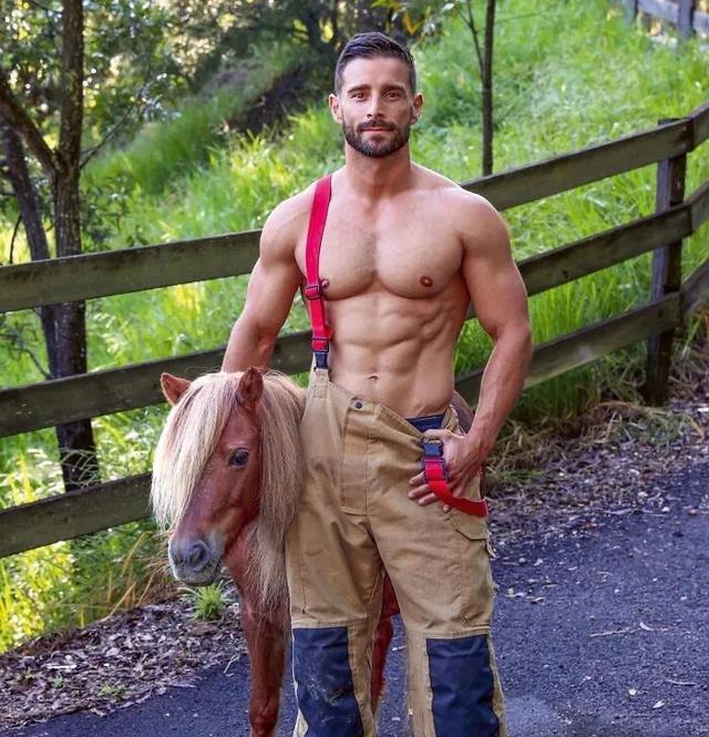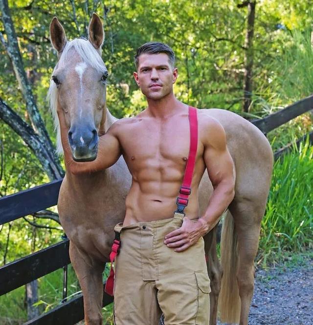 你会看到这些勇敢的消防员站在阳光下,身后是一望无际的草地和自由奔跑的马群,他们的每一个姿态都透露着无尽的阳刚之气。