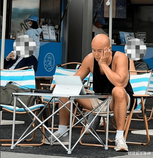 50岁乐嘉现身深圳海边度假,他穿着无袖上衣,露出一身小麦色皮肤,身材好壮硕,男性荷尔蒙爆棚!他看着桌上的平板电脑,疑似是