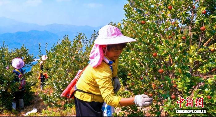 “我们大部分时间住在山里,负责日常的割草、施肥、修枝等工作。”油茶管理人员卢火林说,他从2013年就在这里工作,每月工资5000多元,虽然山上条件艰苦点,但胜在时间自由、工作稳定。
