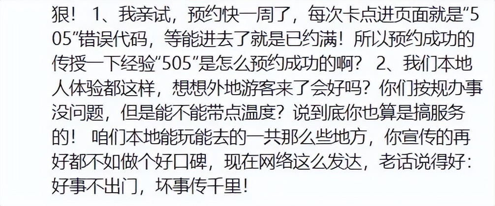 其次是工作人员的“冷面”争议。关于工作人员服务态度的“冷冰冰”,虽可能是个别现象或沟通中的误解,但也值得重视。毕竟,提前线上“预约”是入场的规则,无预约被婉拒本身无可厚非。不过,在严格执行规定的同时,若工作人员能再多注入一份耐心、多展现一丝热情,也能让那些“抢”不到票的游客,尤其是带孩子的家庭,获得更温暖、更合理的反馈。