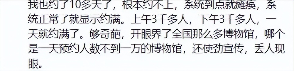 就在上周六,“人潮汹涌”的访问量更是直接“挤爆”了预约系统,造成一度瘫痪的局面,足见其受欢迎的程度!虽然故障在当晚11点多就得到解决(官方应对还算迅速),但试运营期间的“一号难求”,核心原因在于官方为保障参观体验而实施的严格客流管控。据我的观察和推测,日接待量很可能被控制在7000人以内(上下午各约3500人),僧多粥少,预约成功竟然成为了“玄学”。