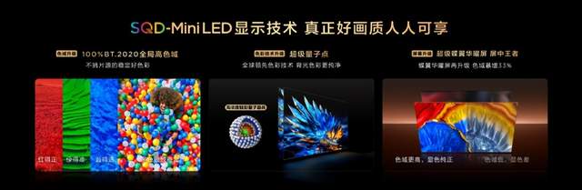 而Q10M pro和Q10M搭载的SQD-Mini LED技术,得益于超级量子点与超级蝶翼华曜屏的同步升级,超级量子点发出超级纯净的红、绿、蓝三原色光,超级蝶翼华曜屏的晶粹高色阻材料让屏幕的穿透光谱与源头光谱更适配,使电视色域达到了行业至高的100%全局高色域,每一种色彩丰富的复杂画面都被准确还原,电视中的色彩始终准确真实,这才能说是满足日常观影的稳定好色域。