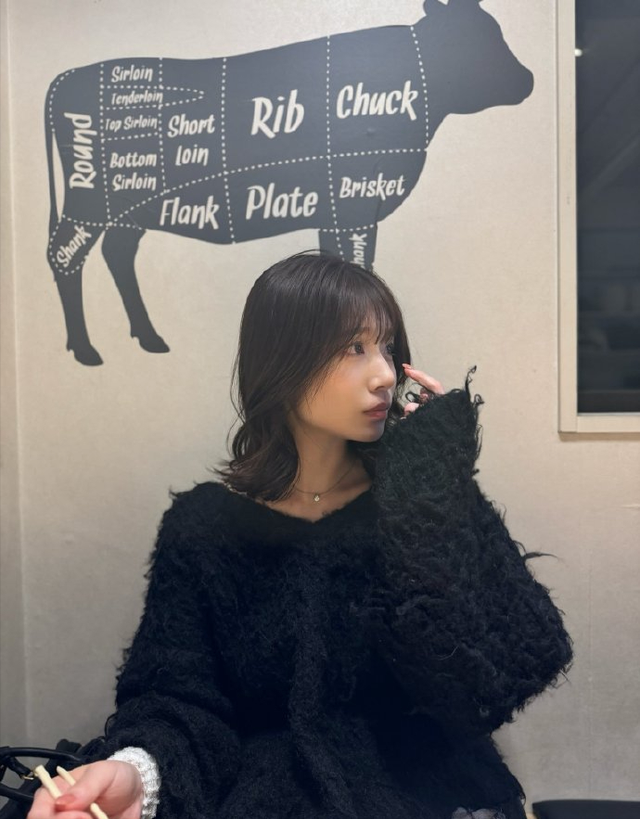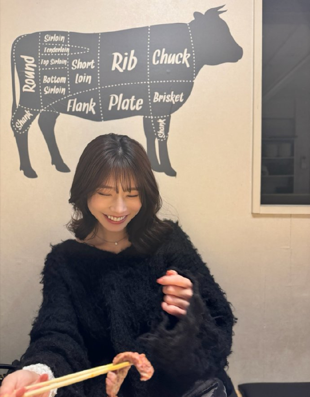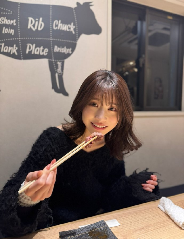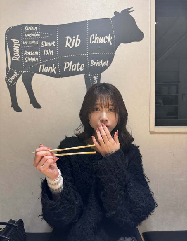 河北彩伽工作之余,身穿宽松黑色毛衣在烤肉店好評なので…