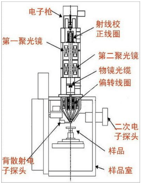 镜筒:包括电子枪、聚光镜、物镜及扫描系统,用于产生并控制电子束在样品表面的扫描。