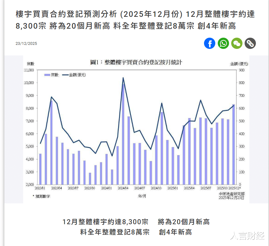 2025年,香港整体楼宇买卖合约登记量达80702宗,创四年以来新高。