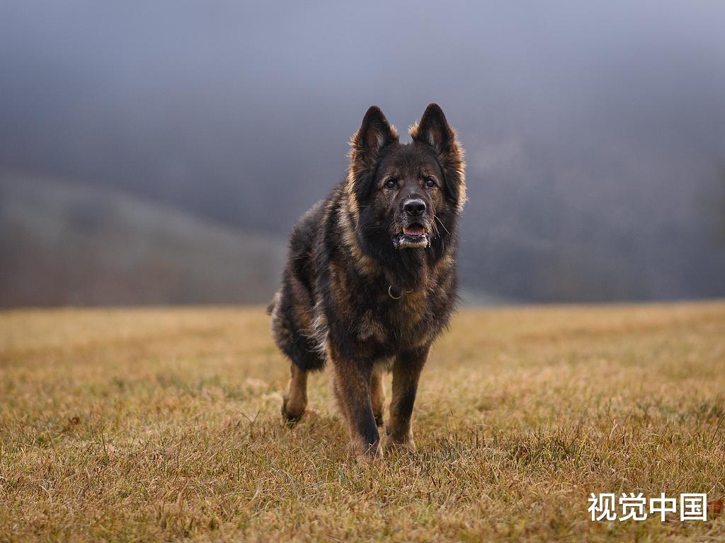 说着,工作人员从车里牵出了一只德国牧羊犬。