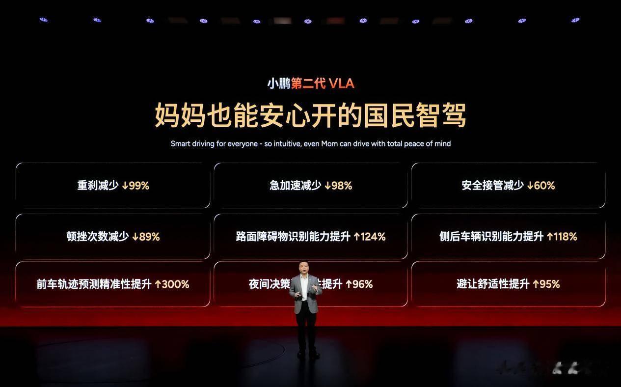 小鹏第二代VLA重构模型范式,开创性去掉“语言转译”环节,直奔L4终局。在此次体验日上,何小鹏提到:“只有妈妈都喜欢开,才能称为「国民智驾」。好的智驾应该像坐电梯一样,按下启动键,就能够从家里到达公司”。围绕这一目标,小鹏第二代VLA聚焦用户真实出行痛点,在“安心丝滑、全场景能力、高效率”三大体验维度全面升级——