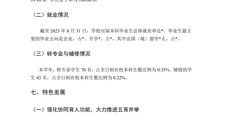 很遗憾,石铁大没有公布最近几年的毕业生就业数据。距离现在最新的数据也是2022年的。但是发布了一份2023-2024 学年本科教学质量报告。就是这份报告,在就业情况的描述中,竟然也把一些关键数字给隐去了。呵呵,不知道校方是底气不足呢,还是另有其他的难言之隐。
