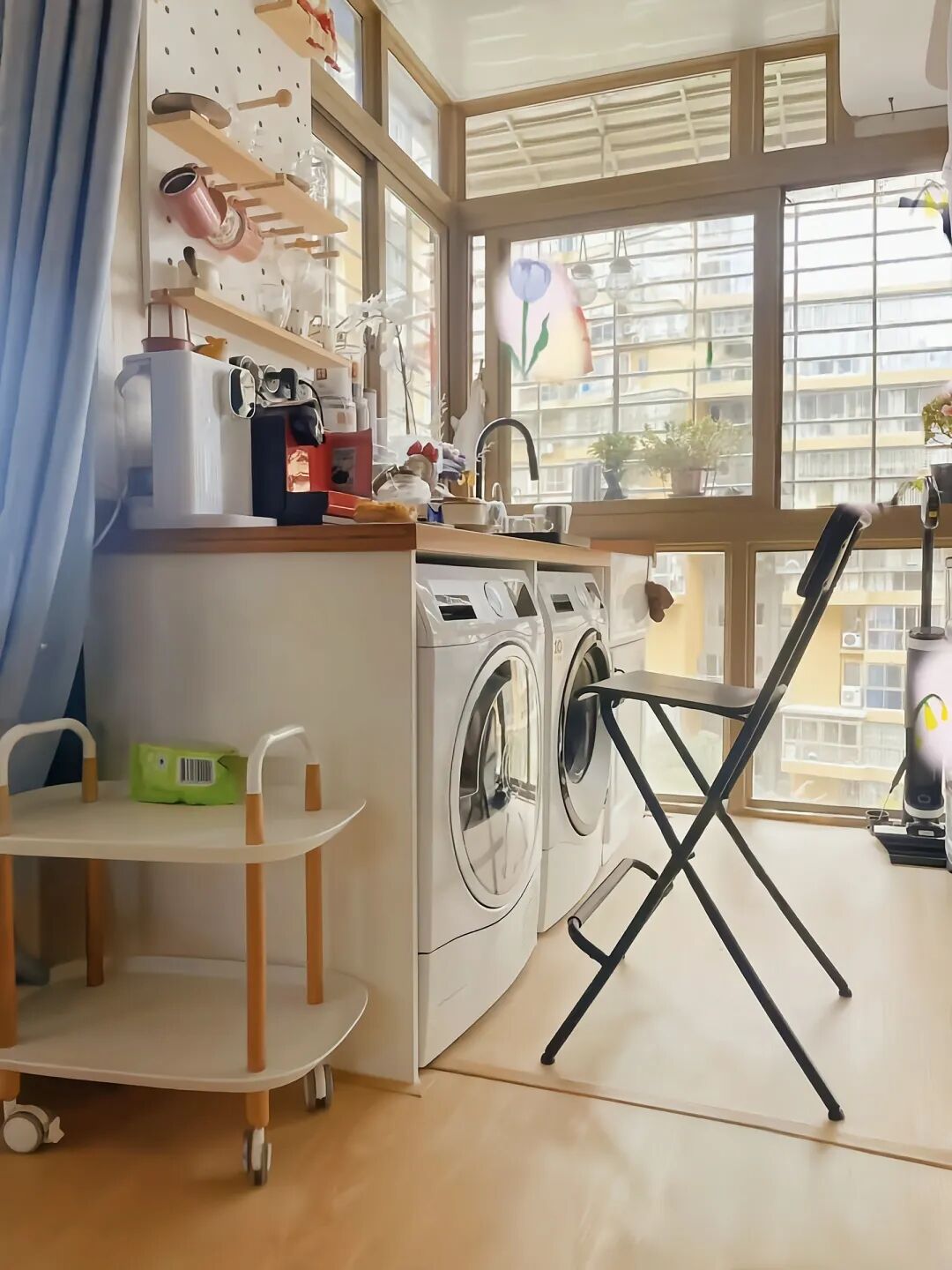 阳台从此华丽转身,从“晾晒乱炖区”升级为“家务指挥中心”,不但方便,还美观。