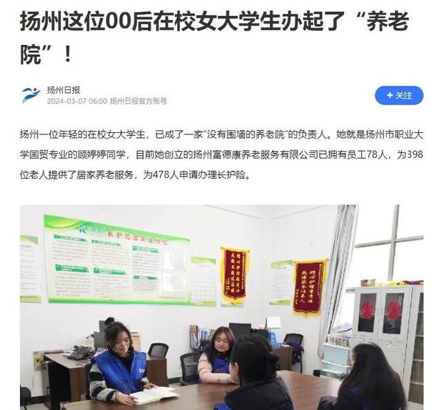 扬州日报:《扬州这位00后在校女大学生办起了“养老院”!》