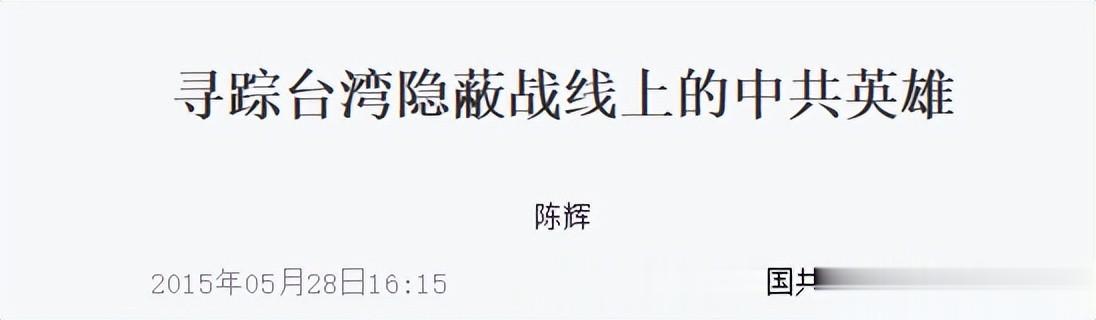 人民网——寻踪台湾隐蔽战线上的中共英雄 2015-05-28