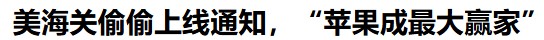 环球时报2025-04-1美海关偷偷上线通知,“苹果成最大赢家”