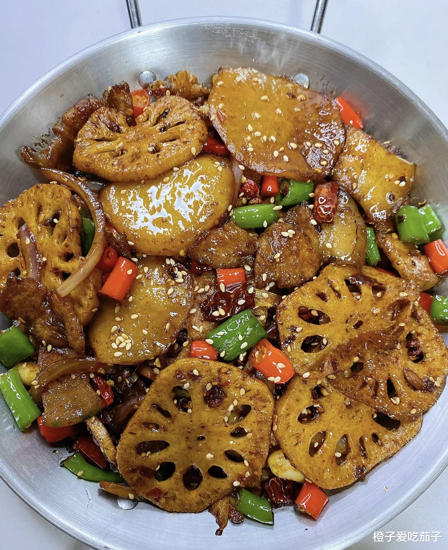 6. 加入青红椒:炖煮时间到后,加入切好的青红椒块,大火翻炒2-3分钟,至青红椒断生。这一步的目的是保持青红椒的清脆口感和鲜艳色泽,同时增加菜肴的辣味和色彩。