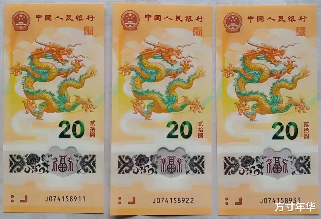 龙钞是2024年发行,面值20元,发行量1亿张。面值和发行量设置得都算不大不小,所以说价格没有出现面值货,但从去年年底开始价格就开始回落,但其价格仍是生肖纪念钞中最高的。