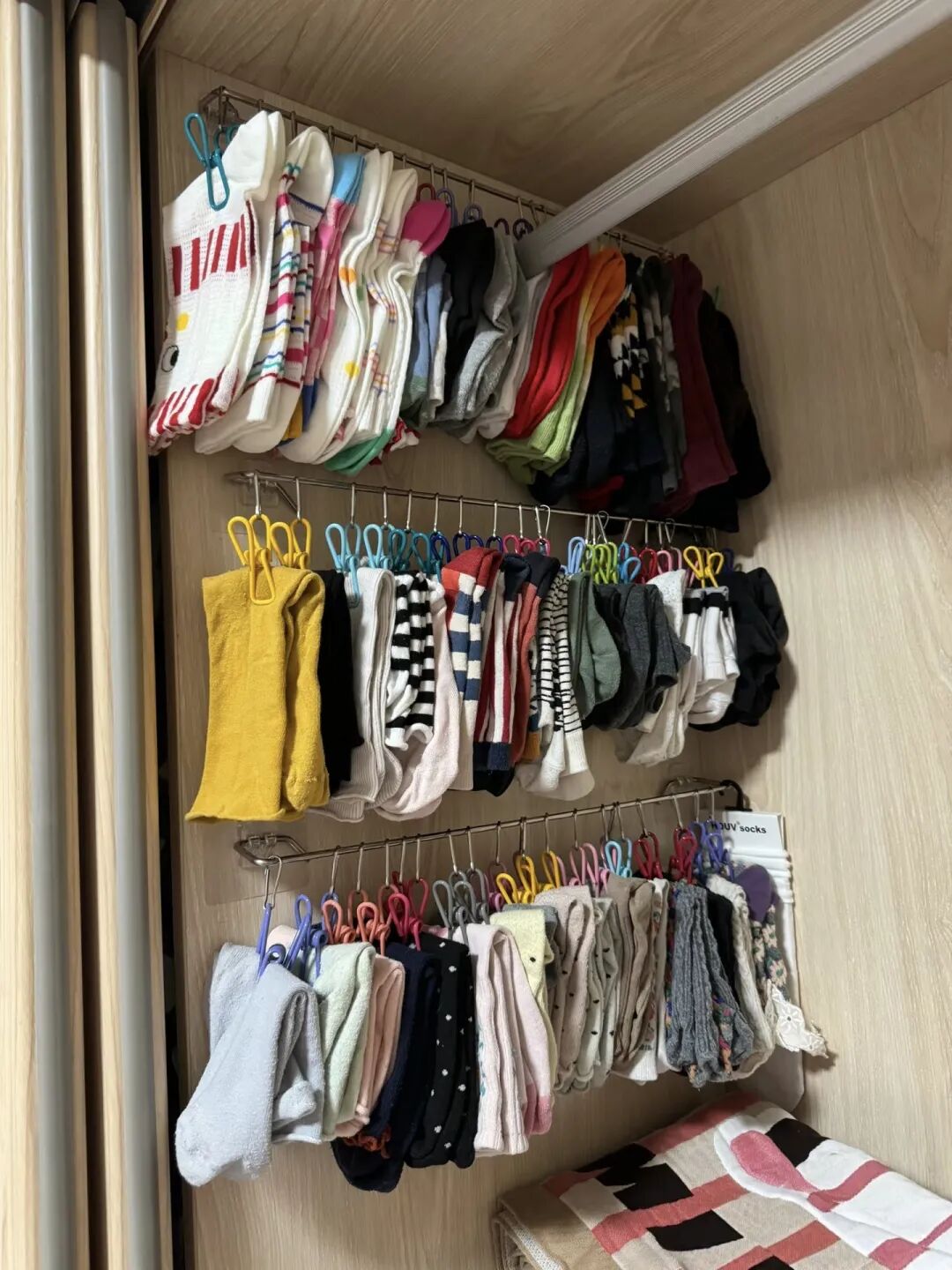 想让袜子们“整齐划一、井井有条”,最聪明的办法就是——挂起来!是的,你没听错,不是堆,是挂!挂起来不仅视觉上爽到飞起,拿取也特别方便,每天挑袜子就像刷短视频一样顺滑。
