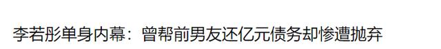 凤凰网2016年3月21日,关于“李若彤单身内幕:曾帮前男友还亿元债务却惨遭抛弃”的报道