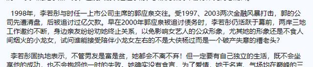 1999年,郭应泉的公司情况更加的不妙,甚至遭入禀清盘,甚至再后来还被追讨过亿欠款、面对这样一个落魄的“穷商人”,李若彤的不少朋友都希望她尽快从这个“无底洞”逃脱出来,可李若彤的做法却让人感动不已。
