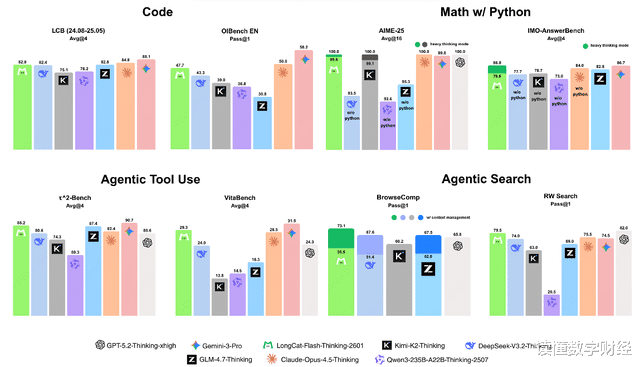 值得一提的是,该模型在工具调用的泛化能力上优势尤其明显,在依赖工具调用的随机复杂任务中,性能表现超越了Claude-Opus-4.5-Thinking,可大幅度降低真实场景下新工具的适配训练成本;同时,新模型支持“重思考”模式,可同时启动8个“大脑”执行任务,确保思考周全、决策可靠。