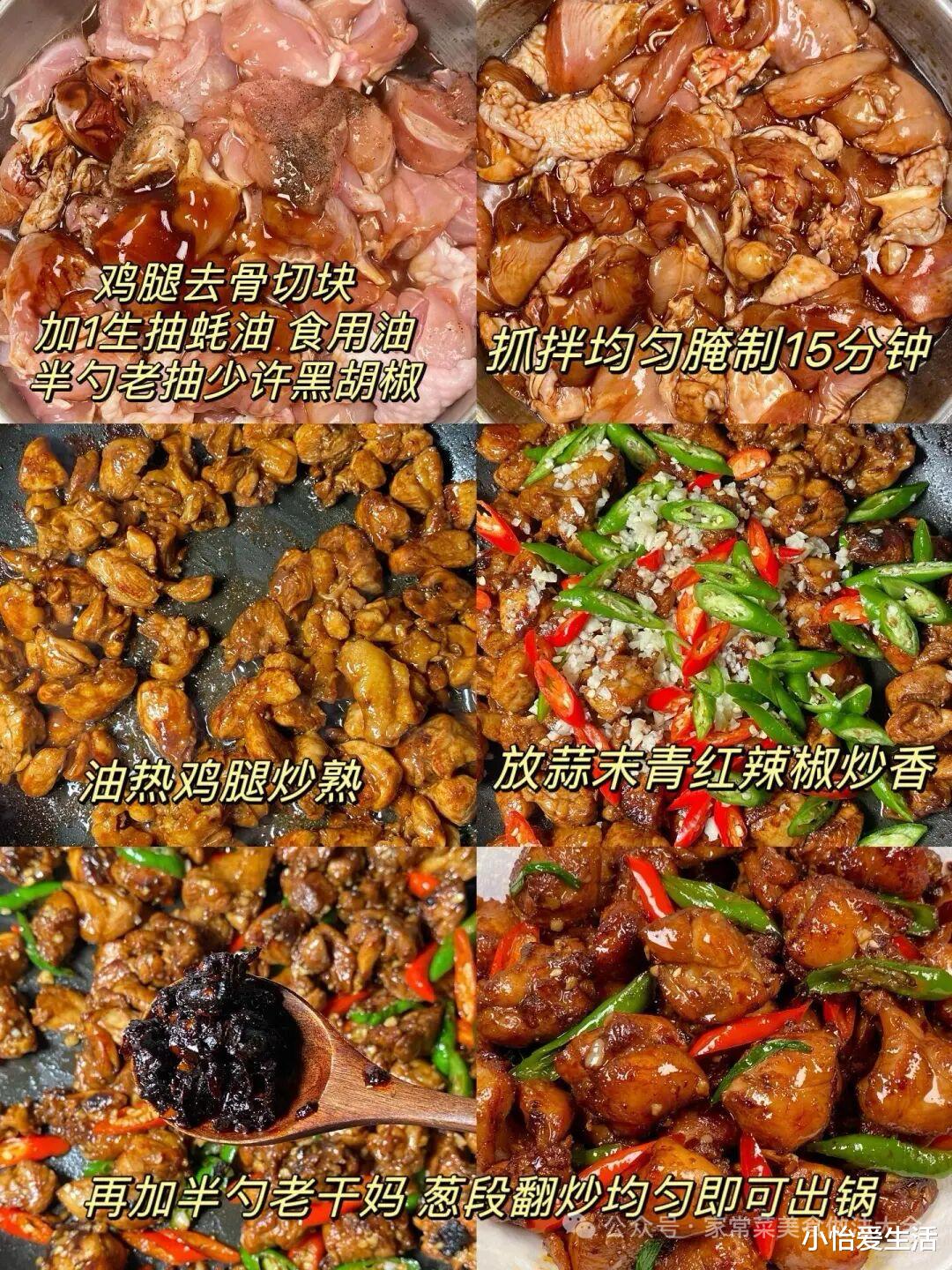 1. 备料:鸡腿2个(去骨切小块),青红椒各1个(切滚刀块),姜片、蒜片、干辣椒2个(可选);腌料:生抽10毫升、料酒10毫升、蚝油5毫升、淀粉5克、少许盐和胡椒粉。