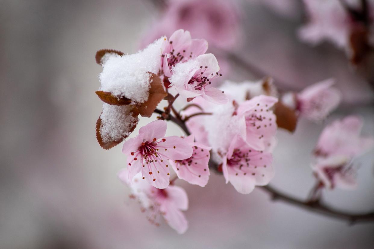 苹果、梨树正在盛花期,零度以下低温冻伤花柱,看着满树花,秋天只剩几个歪果子。