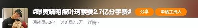 因为在前一段时间,网上就爆出过叶珂向黄晓明索要天价分手费的事情。