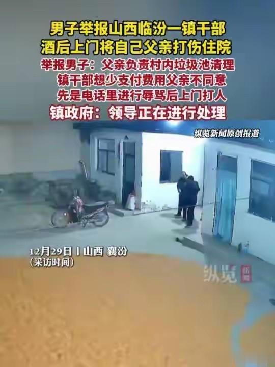 12月30日,一男子在社交平台发布视频称,山西临汾包村干部酒后上门将自己父亲打伤住院,已报案,视频一经发出,立即引起广大网友关注和热议。