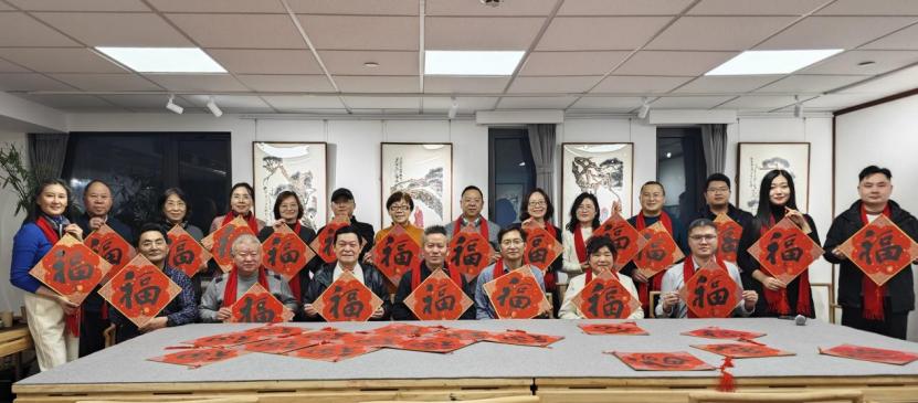 左古山先生更以笔墨寄情,现场为与会嘉宾亲笔书写“福”字,将元旦的祝福融入传统书法艺术之中。这一充满温度的文化互动,不仅展现了艺术家深厚的笔墨功力与人文情怀,也让艺术从展台走向生活,使与会者在翰墨清香中切身感受中华文化的魅力,进一步增强了活动的文化感染力与凝聚力。