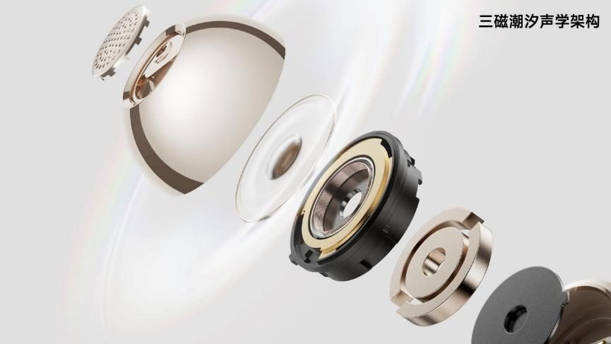 作为耳机核心竞争力,Clip Pro搭载智能云域声学技术,从声源、声场到算法层层优化,彻底解决开放式耳机低音不足、嘈杂环境听感模糊等问题。其核心是自研三磁潮汐声学架构,将传统单磁体升级为三枚磁体,大幅增强磁路性能与磁通量,提升喇叭驱动力与瞬态响应,让音乐还原更真实自然,低频下潜更深、听感澎湃饱满。
